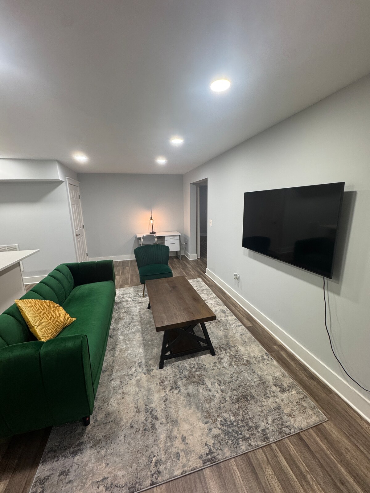 Il monolocale al piano inferiore con ingresso privato è un luogo perfetto per una vacanza. Arredamento e decorazioni contemporanee. Wifi e streaming Roku disponibili. Il divano può essere trasformato in un comodo letto matrimoniale per un terzo ospite. La zona notte dispone di un letto matrimoniale con biancheria da letto di alta qualità. La cucina è dotata di frigorifero, forno a microonde, tostapane, macchina per il caffè Kureig e bollitore. Bagno completo con ampio armadio e ferro da stiro. Lavatrice e asciugatrice a disposizione solo per gli ospiti che soggiornano a lungo.