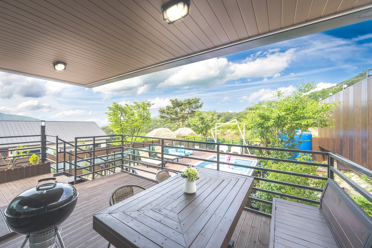 La nostra casa Cinabro è È un alloggio privato come una villa tranquilla in un villaggio di montagna dove tutta la famiglia, gli amici e gli amanti vanno a guarire e andare. Si tratta di una dépendance fatta da sé, quindi è resa più sicura e più robusta, e tutti i mobili, i bagni e le cucine sono realizzati a mano con legno e cipresso, rendendolo uno spazio benessere ricco di profumi di cipressi. È un alloggio sensazionale con aria fresca, una terrazza sul fianco della collina, un ampio giardino con prato, una zona barbecue con braciere, un portico esterno e un'amaca. È una sistemazione comoda con il vicino trekking del bacino idrico di Seonggok, la sauna a vapore di Gunbulo e una grande caffetteria. Come riferimento, c'è il Punggak Nonghyup Hanaro Mart e un grande negozio di alimentari a 10 minuti di auto, quindi è facile fare shopping.