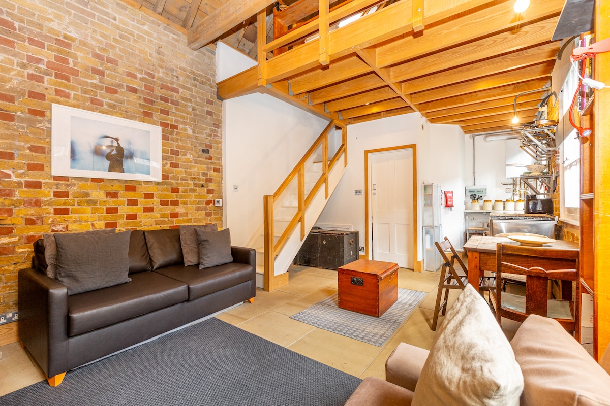 Attraversa una porta in vetro colorato e sali una scala luminosa fino a un tranquillo loft ricavato da una casa privata. Comprende una camera da letto matrimoniale, cucina e soggiorno a pianta aperta e un bagno con vasca idromassaggio. I lucernari illuminano lo spazio e offrono una vista su The Shard. Gli ospiti possono usufruire del proiettore, del WiFi e di un'atmosfera tranquilla dopo aver esplorato Londra. Ideale per coppie, viaggiatori solitari e piccole famiglie, il loft offre comfort e privacy vicino a Canary Wharf, all'O2 e a Westfield Stratford.