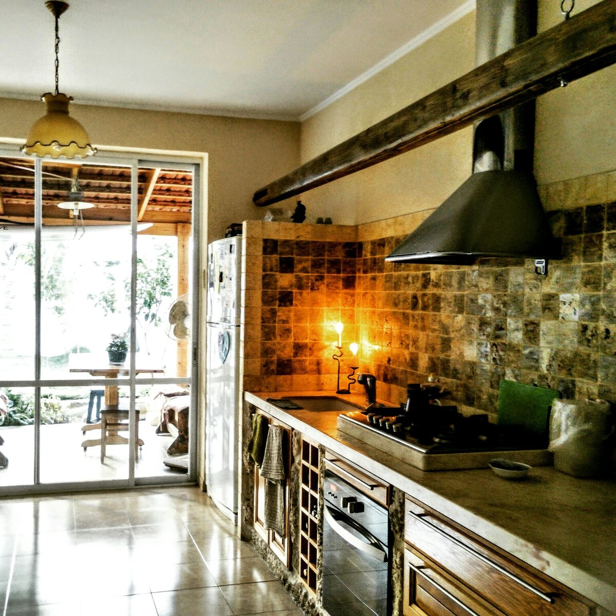 Cortile, salone e soggiorno aperti,cucina e bagno,parcheggio e vista sulla città, ingresso indipendente,3 vista laterale, cucina completamente attrezzata, giardino verde di fronte,B.B.Q, Aria condizionata, mercato nelle vicinanze.