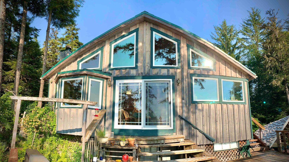 La boa! Immerso tra pini imponenti e cespugli di bacche selvatiche, questo accogliente chalet si trova nel cuore di Juneau. La casa a forma di A degli anni '80, ristrutturata, con 2 camere da letto e 1 bagno, presenta un'estetica calda e accogliente. Progettato pensando agli ospiti, l'interno luminoso ti accoglie con opere accattivanti di artisti dell'Alaska e dettagli accoglienti. Gli arredi confortevoli, la cucina ben attrezzata e l'ambiente tranquillo ti faranno sentire come a casa. Rilassati nella sauna a botte in legno di cedro, perfetta dopo una giornata di avventura!
