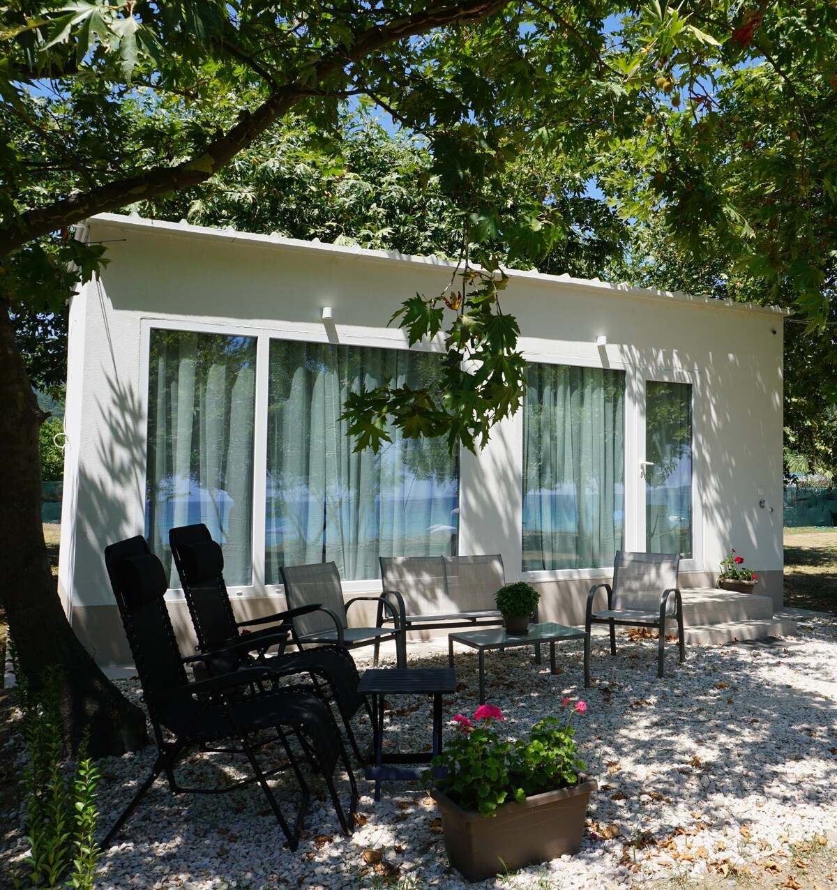 Questa minicasa si trova sul mare Egeo settentrionale. Si trova in una zona recintata con erba, con un grande ulivo al centro del cortile, dove potrai rilassarti e goderti la brezza marina e la vista spettacolare. La casa è composta da una camera da letto con letto matrimoniale, un soggiorno che può ospitare uno o due visitatori in più, un bagno con wc e una cucina ben attrezzata con tutti gli elettrodomestici necessari. Nell'area esterna c'è un frigorifero in un contenitore protetto con cucina aggiuntiva.