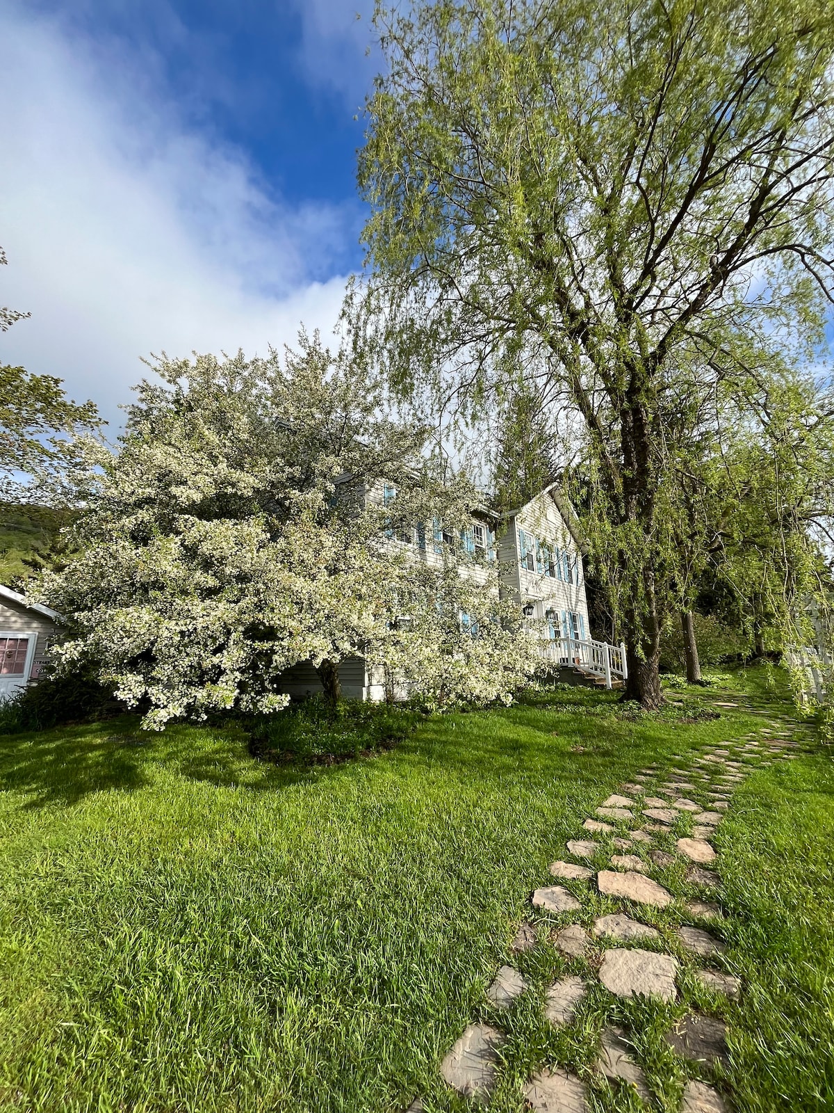 Questo alloggio accogliente si trova in una strada storica in uno dei villaggi più antichi delle Catskill. Situato su una strada che vanta un'affascinante chiesa bianca, una grande biblioteca in pietra blu e uno dei più antichi teatri dell'opera, trasformato in cinema. Raggiungi a piedi negozi di antiquariato, ristoranti, caffetterie e il parco (per nuotare in estate o pattinare sul ghiaccio/slittare in inverno), oppure sali in macchina per esplorare le fattorie circostanti, i sentieri escursionistici e i mercati degli agricoltori nelle stagioni più calde. Perfetto per una coppia e 1-2 bambini.