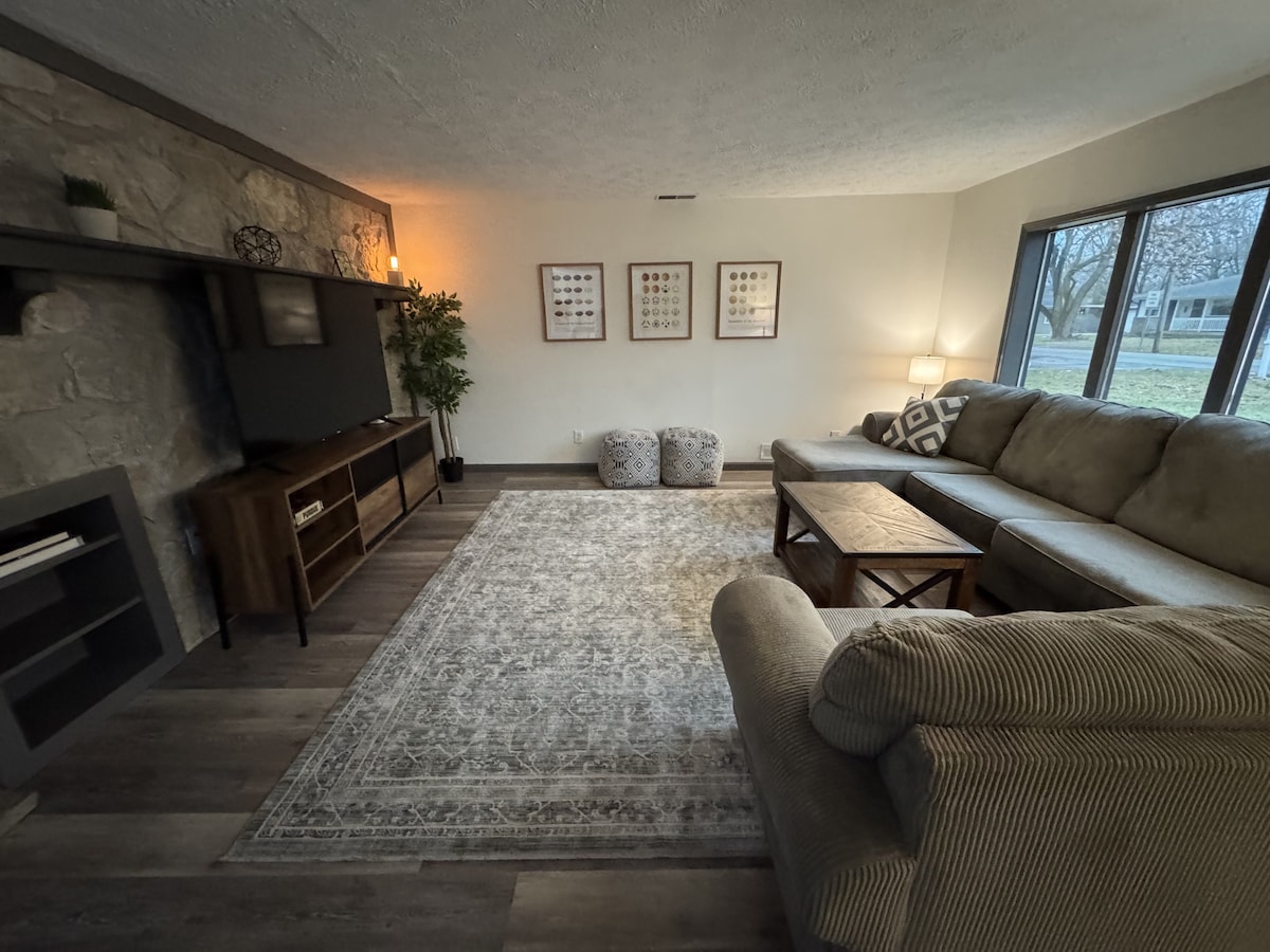 Scopri la serenità nella nostra spaziosa casa di Fishers, completamente arredata, con 3 camere da letto, 2 bagni e un bagno di servizio. Ideale per le famiglie, situato in un quartiere tranquillo vicino al centro, a negozi, ristoranti e luoghi di intrattenimento, tra cui il Ruoff Music Center, il Top Golf, la Nickle Plate Dining Area e The Yard. A pochi minuti dal Fishers District e a 20-30 minuti da Indianapolis. Goditi una vacanza tranquilla con la comodità di una stazione di ricarica per veicoli elettrici. Perfetta per soggiorni mensili o settimanali.