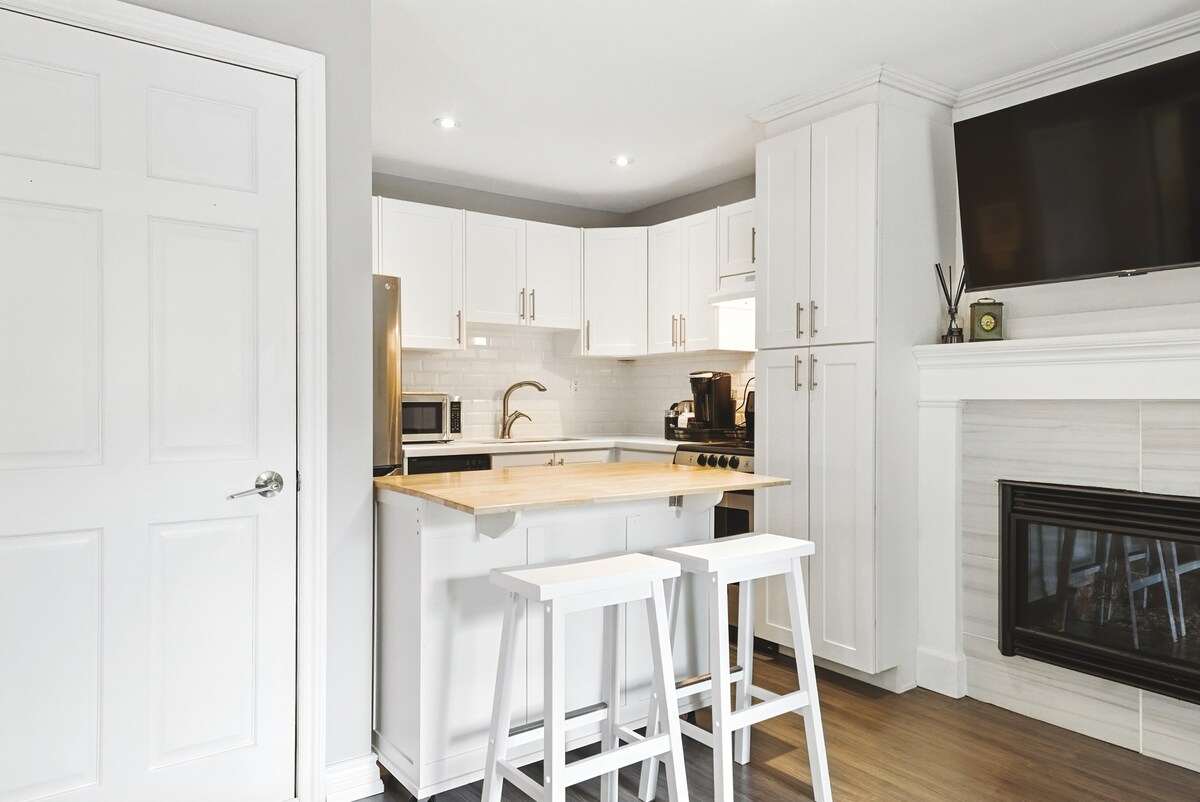 La Gallery Suite, vicino a Locke St. e McMaster, è ideale per soggiorni di lavoro o di piacere. Questa luminosa suite a pianta aperta con camera da letto separata presenta opere d'arte uniche dell'artista di Guelph Ryan Price. Situata sopra una tranquilla clinica RMT, ti permetterà di trascorrere un soggiorno tranquillo e privato. A pochi passi da negozi e caffetterie alla moda. Per comodità, è incluso il parcheggio gratuito. Prenota ora per vivere un mix di comfort, arte e praticità!