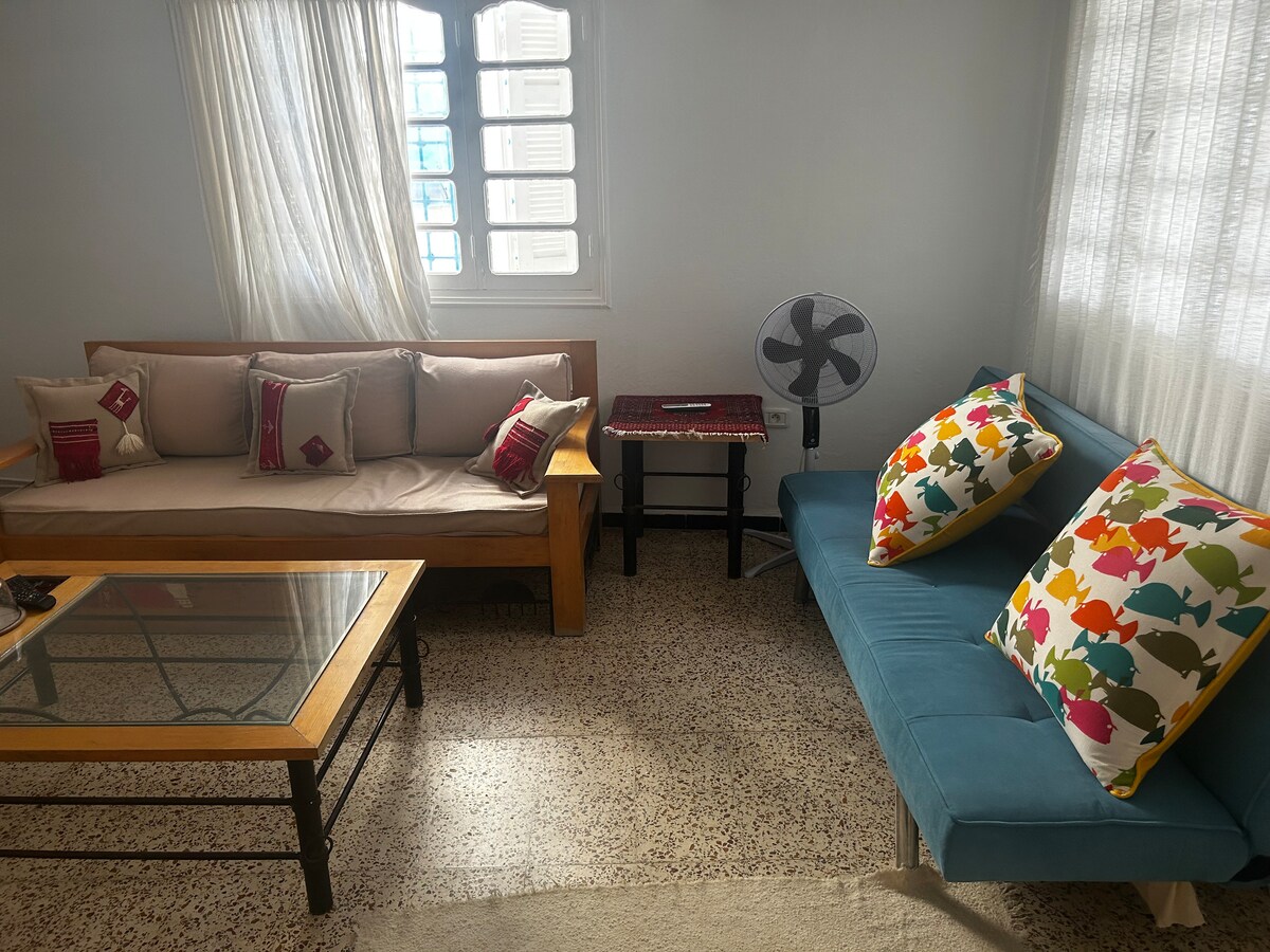 Nel residence Maamoura Beach, ex club hotel gioiello del villaggio , Affitta tre camere da letto con soggiorno, due bagni con doccia , aria condizionata e riscaldamento centralizzato in tutte le camere , cucina completamente attrezzata ( lavatrice , piano cottura, forno a microonde, macchina per il caffè) Un bellissimo giardino con garage per due auto a tre minuti dal mare. Maamoura è uno dei villaggi più puliti di Capo Bon, a 5 km da Nabeul, più volte eletto Bandiera Blu.