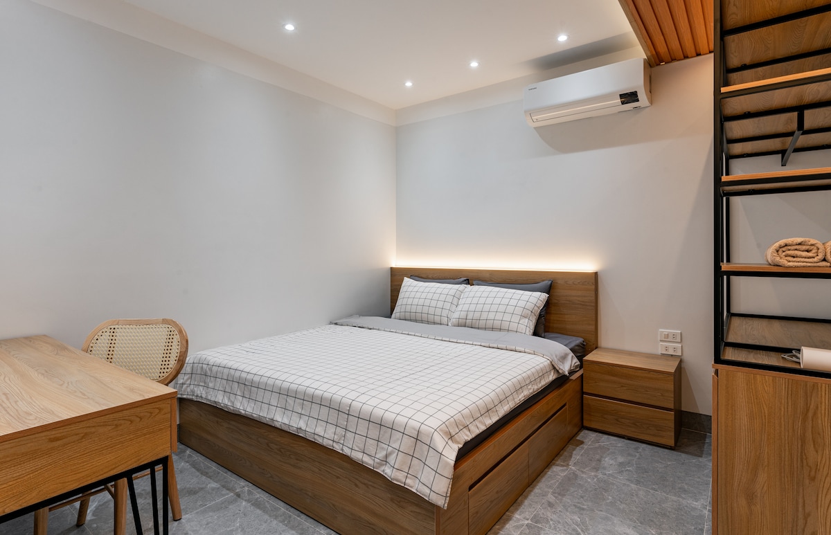 Nascosto nel quartiere francese di Hanoi, questo appartamento di 82 m² offre un'elegante miscela di verde e design minimalista. Ispirato all'estetica giapponese, lo spazio si snoda dolcemente da una stanza all'altra, inondato di luce naturale, texture morbide e toni rilassanti. Un ampio balcone con piante lussureggianti invita a mattinate lente e serate tranquille. Ogni dettaglio è intenzionale: un rifugio tranquillo in città.