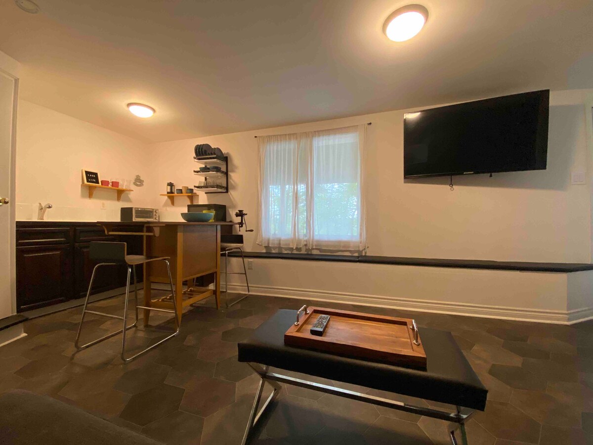 Bella suite per gli ospiti indipendente al piano superiore di una casa residenziale. È necessario salire una rampa di scale. La suite dispone di un ingresso privato. Proprietà immersa tra alberi secolari. Gli ospiti dormono in un comodo letto matrimoniale con morbidi cuscini. Rilassati in una vasca idromassaggio. Goditi la comodità del cucinotto della suite e cena in uno spazio incantevole e pittoresco. Caffè, tè e acqua in bottiglia gratuiti! È vicino al centro di Windsor, a Ski Martock, alla Annapolis Valley e all'autostrada 101 per spostarsi facilmente.