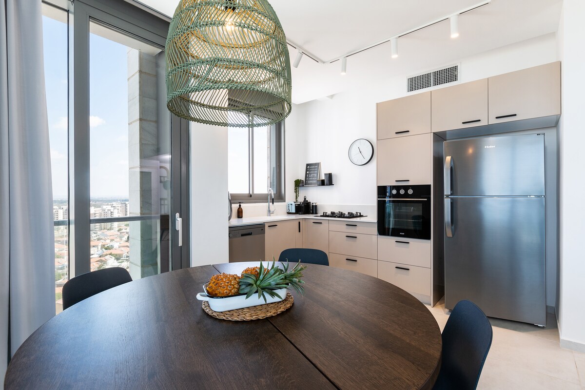 Un senso di libertà e brezza senza allontanarsi dal divano! Sulla ricercata via Gad Mansions, un appartamento di alta classe situato a metri da Haatsmaut Square e dalla spiaggia L'appartamento che è stato appena ristrutturato, gode di una splendida vista panoramica con un'enorme Vitrina nel soggiorno che ti fa sentire come se fossi sull'acqua. La struttura è stata progettata con cura per darti una sensazione di lusso e calore. La cucina è nuova e accessoriata con tutto ciò di cui potresti aver bisogno. L'appartamento dispone di 3 camere da letto in totale, con 7 letti, e circa 2 bagni completi con doccia e vasca. La posizione dell'edificio è sul lungomare e a pochi passi da ristoranti, café e intrattenimento nel centro città e sulla spiaggia.
