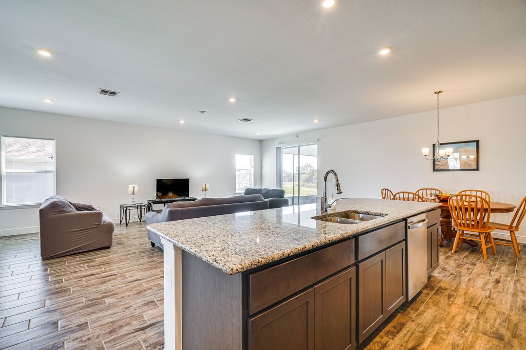 Il soggiorno ha una smart TV da 65", montata a parete con un camino LCD sottostante con audio surround - Tutte le TV hanno Netflix. La sala bar ha un piccolo frigorifero, tavolo da biliardo e bersaglio per freccette. All'esterno c'è un lanai privato con piscina riscaldata e un focolare a propano. Goditi l'audio Sonos con la smart TV da 55" nella camera da letto principale; anche la seconda camera da letto ha una TV. La sala bar e la veranda sono dotate di sistema Sonos. A 30 minuti da diverse spiagge. Il garage non sarà disponibile. Casa situata in un tranquillo Cul de Sac