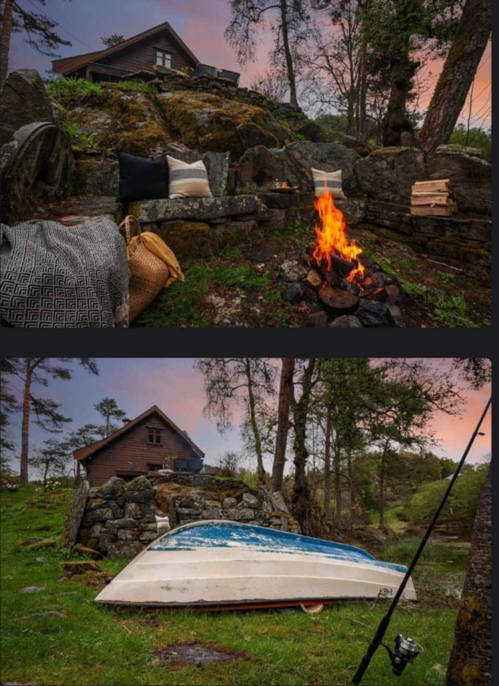 Grande baita sul lago. Vicino a Bergen. È possibile noleggiare una barca.