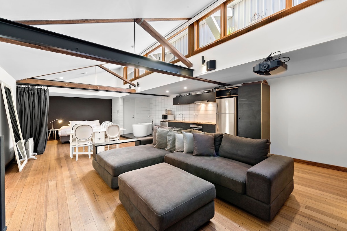 Loft monolocale, completamente autonomo, con bagno privato e sistema mesh Netgear per una copertura wireless completa. Inoltre, dispone di lavatrice e angolo cottura. È un nido perfetto per una persona. L'ingresso è privato e avviene dal cancello posteriore. Il cortile è un ambiente delizioso per uso condiviso. Estremamente vicino a treni, tram e autobus e al miglior parco di Melbourne. Situato nel centro della città, con pub, caffetterie e cinema a pochi passi, è circondato da alberi e vicino al Merri Path e al Capital City Trail.