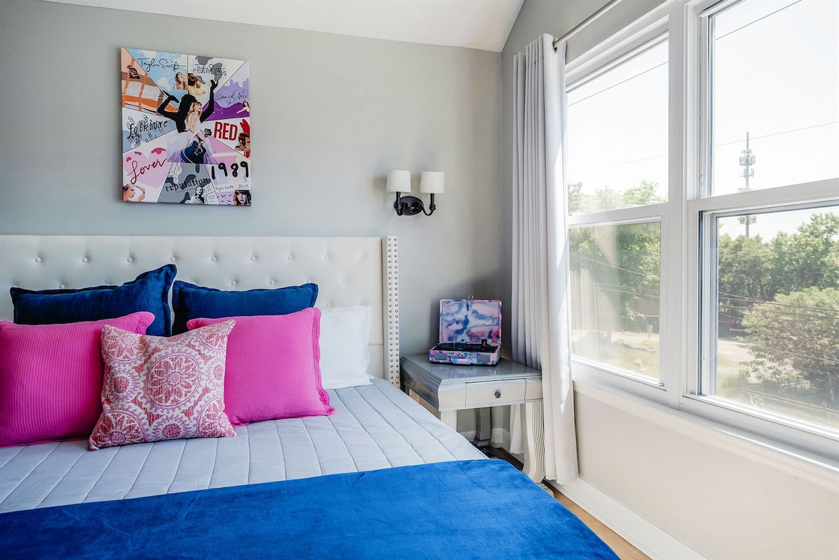 Casa di un famoso chef e visitata da molte celebrità! * Check-in semplice * Park Free *Balcone *A tema Taylor Swift e Dolly Parton * Sedia a dondolo e parete per Instagram * 1 letto matrimoniale grande, 2 letti matrimoniali grandi e un divano letto matrimoniale * Balcone e situato in una grande comunità * Completamente rifornito: include avena e caffè gratuiti, K-Cup, asciugamani, articoli da toeletta e altro ancora Cammina fino a Broadway! Cammina ovunque! Music City Center - 4 isolati Bridgestone Arena-6 isolati Ryman, Nissan-8 isolati Il bagno è attraverso la camera da letto