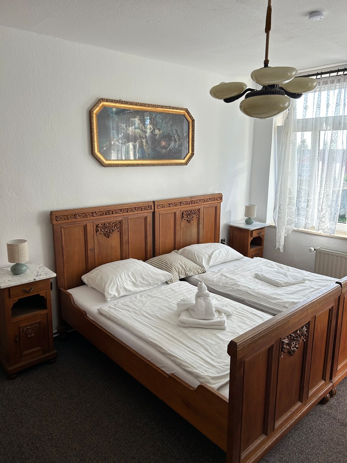 We would like to welcome you in our beautiful historical little Hotel. We are right in the middle of the village. You can find the famous monastery of Walkenried within 4 minutes foodwalk away from our hotel. We are friendly and humorous hosts and are always willing to help you with good informations and the best opportunities to make you holiday in the Harz unforgetable. Our rooms are very nice and freshly renovated in 2021. Each one ist differ from the other - for we are not a standard Hotel!