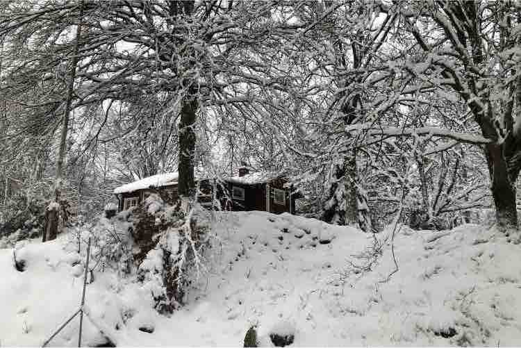 Stuga mitt i naturen med underbar trädgård