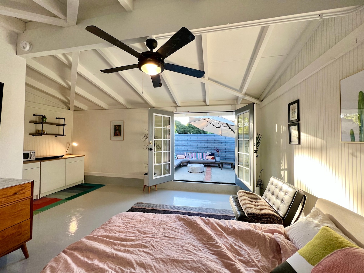 Enjoy a stylish experience at this safe & quiet Cliff May Rancho Estates guesthouse with private entrance & outdoor patio area located in the city of Long Beach. El Dorado Park Nature Preserve is just across the street and features 800 acres of paths, fields, lakes, streams, public sports facilities, dog park, and a bike path to the beach. Located near LGB airport & just a 5 minute drive from CSULB.
