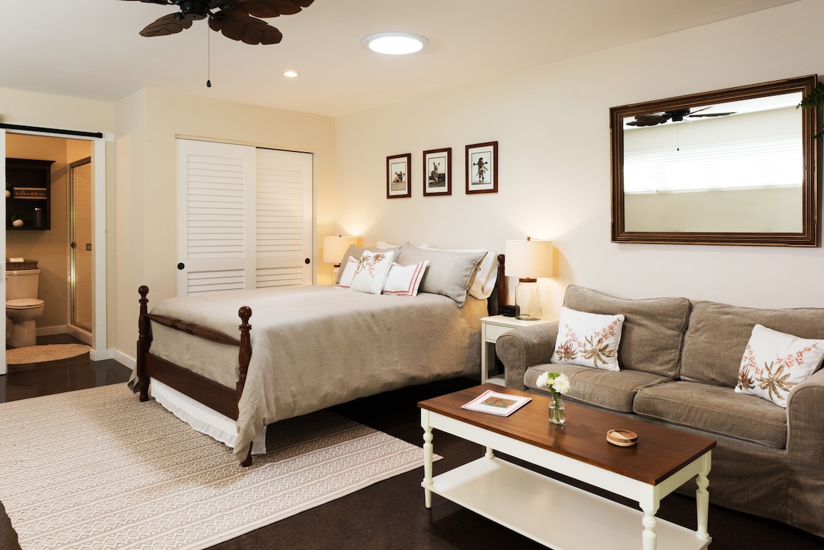 BBKM 2022/0002 con licenza. South Maui Gardens è a pochi isolati di distanza! Una posizione divertente. Questa è un'accogliente e affascinante suite privata con letto matrimoniale grande, ingresso privato e patio privato. A circa 1 isolato dalla spiaggia e dal parco. A pochi passi da ottimi ristoranti, pub, chioschi ambulanti e negozi. Cove Beach è a pochi passi, con alcune delle migliori attività di SUP e surf disponibili. Ottimo snorkeling e osservazione delle tartarughe nelle vicinanze. Goditi lo spettacolo degli uccelli nel mio giardino! Hale Manu i ke kai significa "casetta per uccelli in riva al mare".