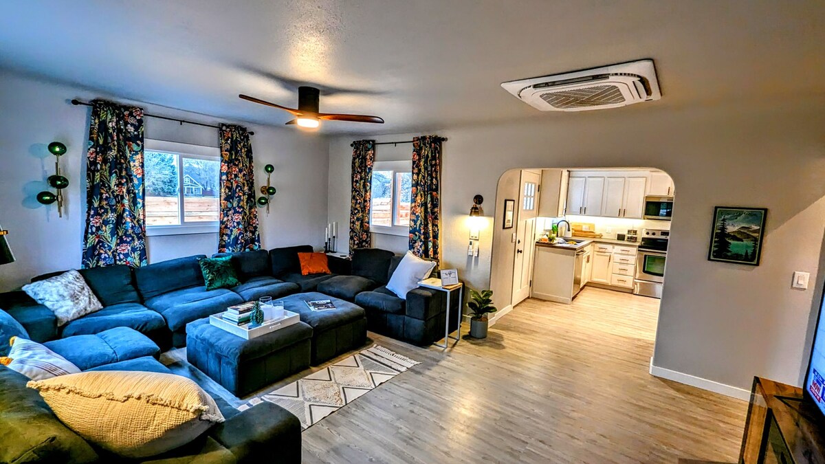 Stop looking and make a great choice by staying at Parkside Place, a fully remodeled 3 bedroom home with modern decor, and every amenity you'll ever need for the perfect getaway. It's the latest listing by FunToStayCDA, owned by an established superhost and local (please click on my profile pic to see other great listings.) This eclectic home sleeps up to ten, featuring a 10 seater cloud couch, ample kitchen, formal dining area, outdoor seating, and an oversized city lot with parking incl RV's