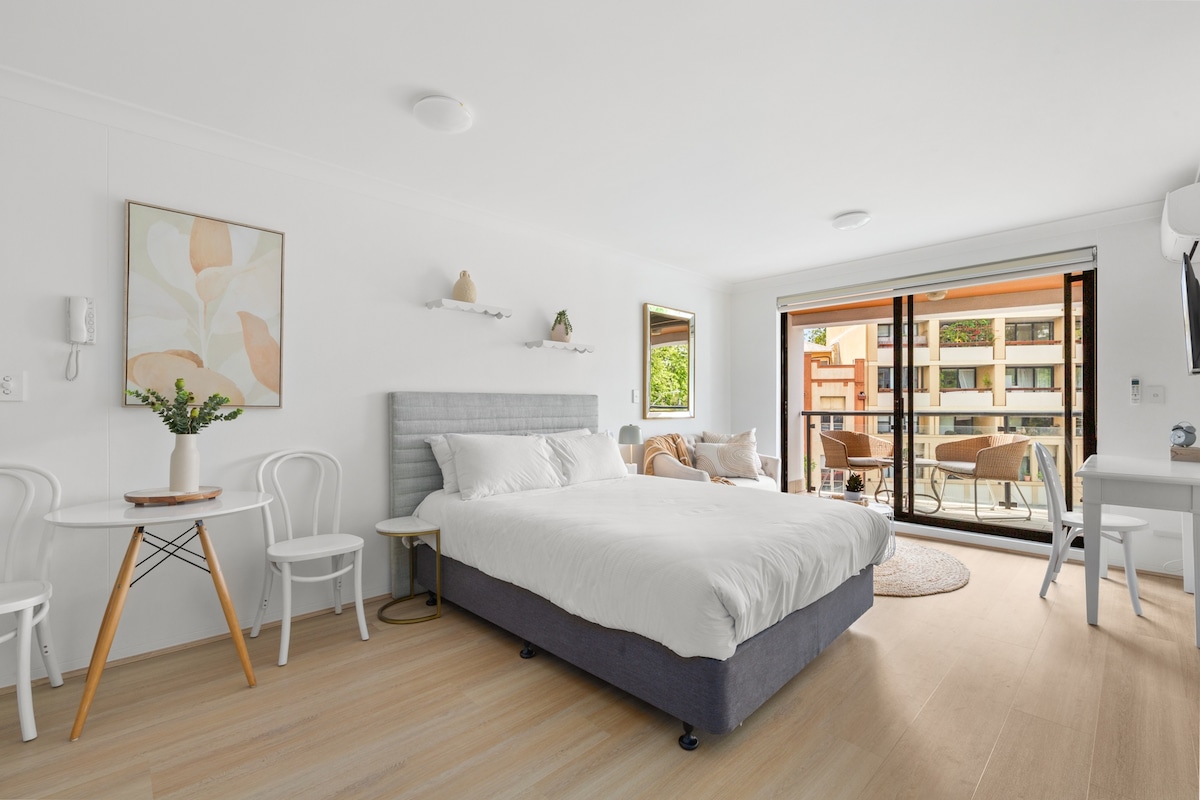 Apri la porta di "Homely in Haymarket". Ho creato un soggiorno adatto a chi è in vacanza, a chi è in viaggio per lavoro o per una breve visita a Sydney. Goditi un'esperienza elegante a prezzi competitivi. Non c'è bisogno di prenotare un ⭐️ hotel a 5 . Sarai vicino a tutto, comprese le opzioni di trasporto pubblico. Un comodo letto ti aspetta per coccolarti. Macchina per il caffè, frullatore per succhi, smart TV e molto altro. Ma... il vero colpo di scena è la sedia a pavone o il letto da giardino sul balcone. I soggiorni 🌸 lunghi sono i benvenuti.