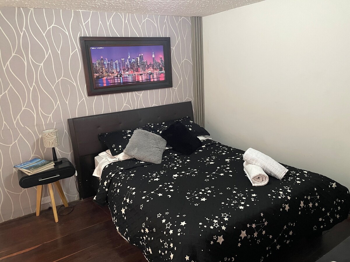 A 10 📍 minuti dall'Aeroporto El Dorado 📍 A 30 minuti dall'ambasciata degli Stati Uniti 📍 Facile accesso ad Av. 26 y La Esperanza 🛏️ Una camera da letto con letto matrimoniale con TV 📺 + divano letto 🛋️ Cucina 🍳 attrezzata, frigorifero, ferro da stiro e stoviglie 📶 Wifi veloce, acqua calda e illuminazione naturale 🧼 Pulizia impeccabile e attenzione personalizzata 💼 Ideale per lavoro o turismo 🚖 Zona sicura, tranquilla e ben posizionata Superhost! Ti farò sentire come a casa tua dal momento in cui arriverai ✨