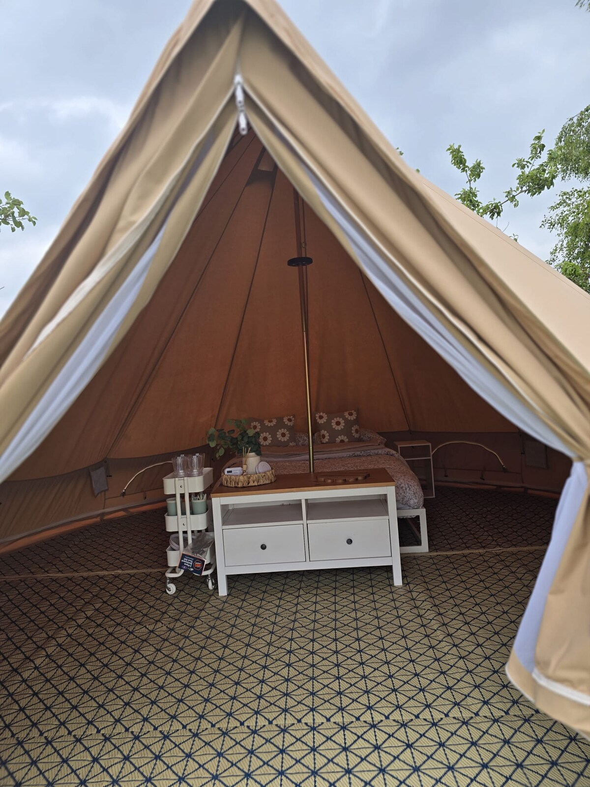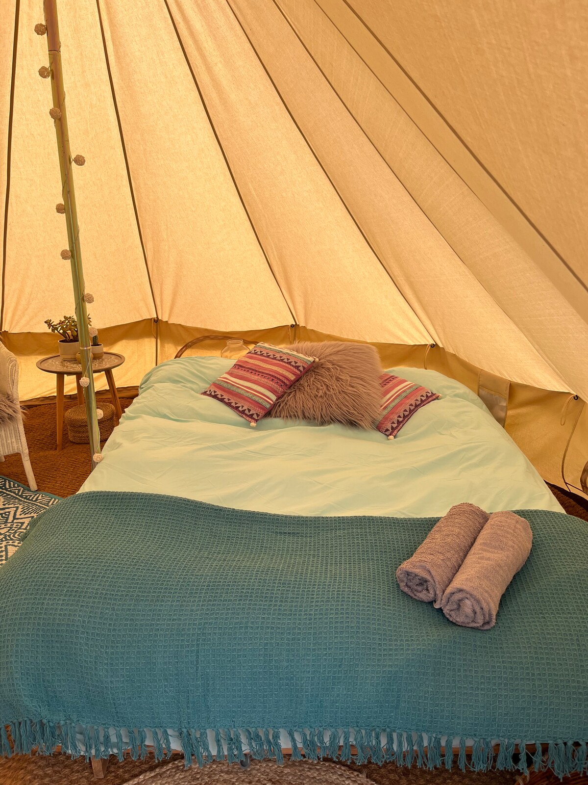 Esperienza di glamping in tenda a campana a Hob Hey Hideaways