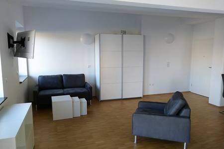 Questo appartamento moderno ed elegantemente arredato si trova in un condominio con 12 appartamenti a Stoccarda-Zuffenhausen. È dotato di una cucina completamente attrezzata, Internet ad alta velocità sicuro, attrezzature di alta qualità e luci da incasso a LED all'avanguardia. La camera da letto è separata da porte scorrevoli in vetro smerigliato e un letto a molle francese di alta qualità 1,40m x 2,00m. Lavatrici e asciugatrici sono disponibili nel seminterrato.