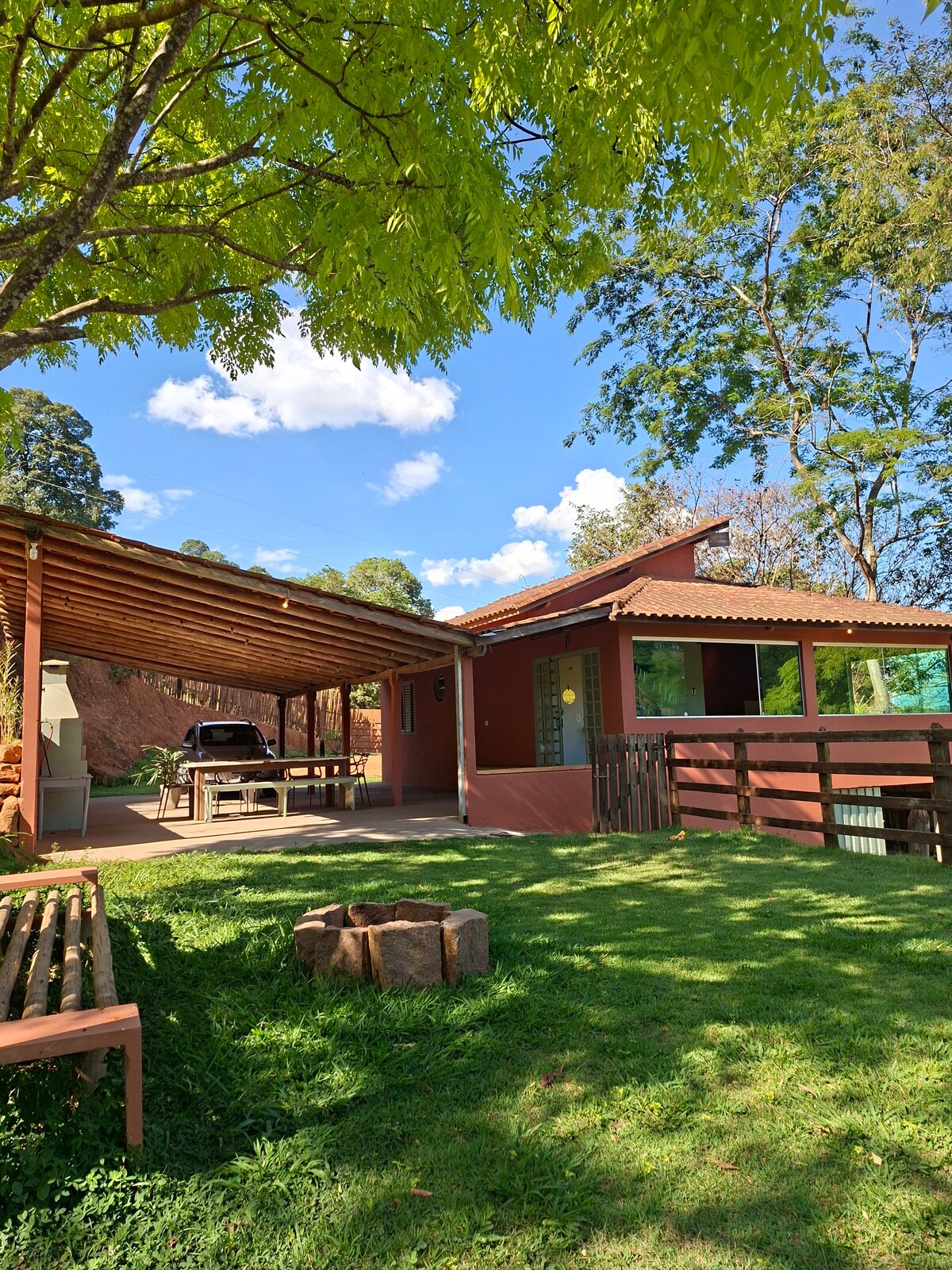 Rilassati in questo spazio tranquillo ed elegante. Ideale per trascorrere qualche giorno di tranquillità immersi nella natura. Lo chalet si trova in una fattoria nella città di Campanha-MG. All'interno della fattoria è possibile accedere alla produzione di formaggi e ortaggi per la città, oltre a un bellissimo laghetto con pesci ornamentali. Facile accesso alla città e alle sue varie attrazioni turistiche (musei, chiese e la famosa diga e la sua gastronomia unica), poiché lo chalet si trova a meno di 1 km dalla città.