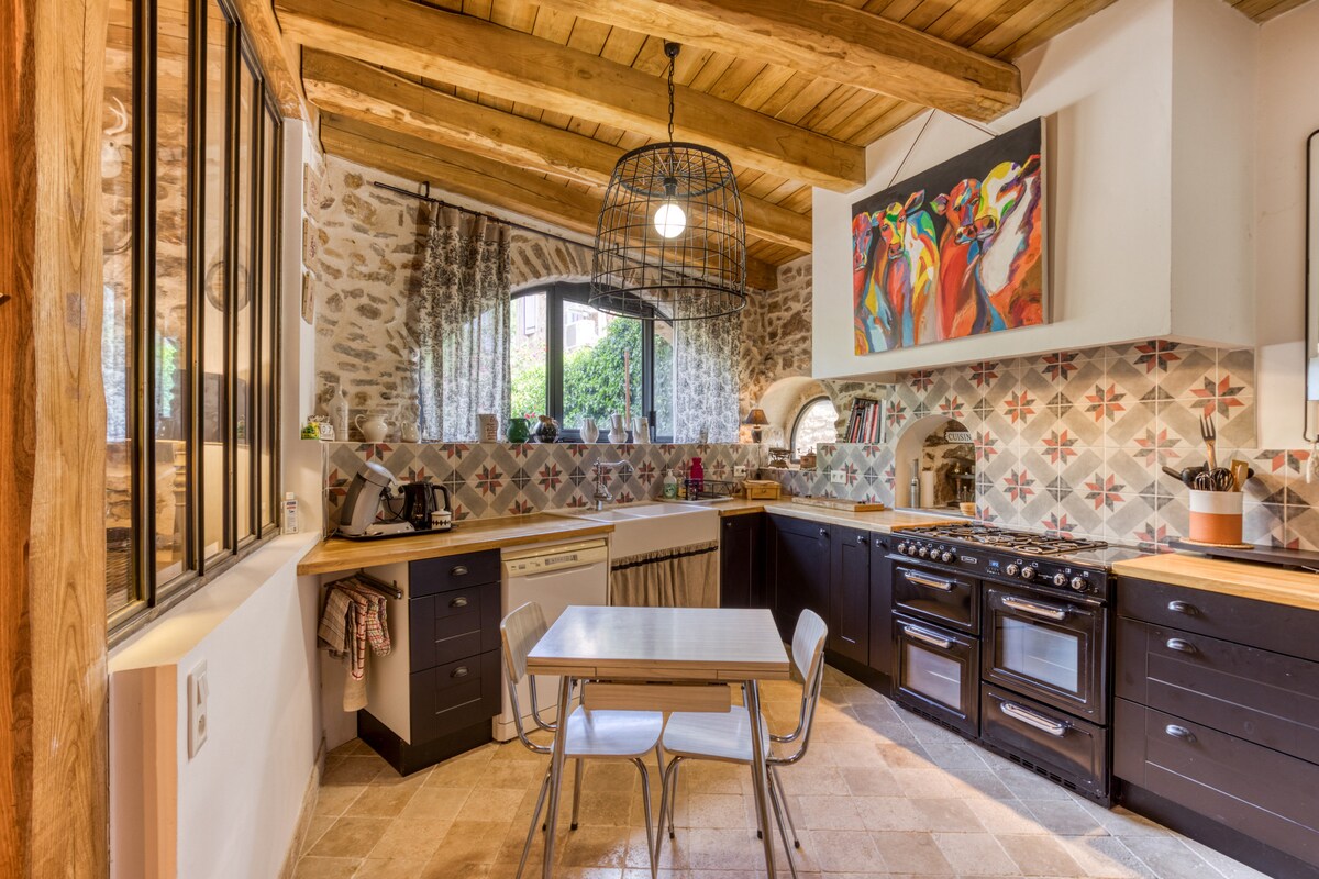 Mas Les Pins (su 2.600 m²) ha una ricca storia e fa parte di un complesso di chiese del XII secolo e di vecchie cantine. Questo ★★★★ paradiso verdeggiante dista solo 3 km dal dinamico centro di Montpellier (10 minuti in tram) e 10 km dal Mar Mediterraneo. Con 2 incantevoli camere da letto, una cucina ben attrezzata, un soggiorno soleggiato, 2 ampie terrazze per godere di un aperitivo con vista sull'ampio giardino e pineta e una piscina di acqua salata di 12m, si ha tutto il necessario per un soggiorno rilassante.