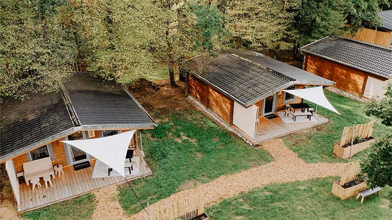 Die Blockhütten bieten zwei Schlafzimmer mit einem Doppel- und einem Etagenbett und ein kleines Wohnzimmer. Außerdem hast Du Dein eigenes kleines Bad. Die Terrasse ist mit einem Sonnensegel und Sitzmöbeln ausgestattet. Freu Dich auf eine entspannte Auszeit mit Deiner Familie oder Freunden. Unsere Hütte ist aus massiven Holzbalken gebaut und die Bettwäsche ist aus besten nachhaltigen Materialien. Schlafe ein mit dem Geruch von duftendem Holz in der Nase.
