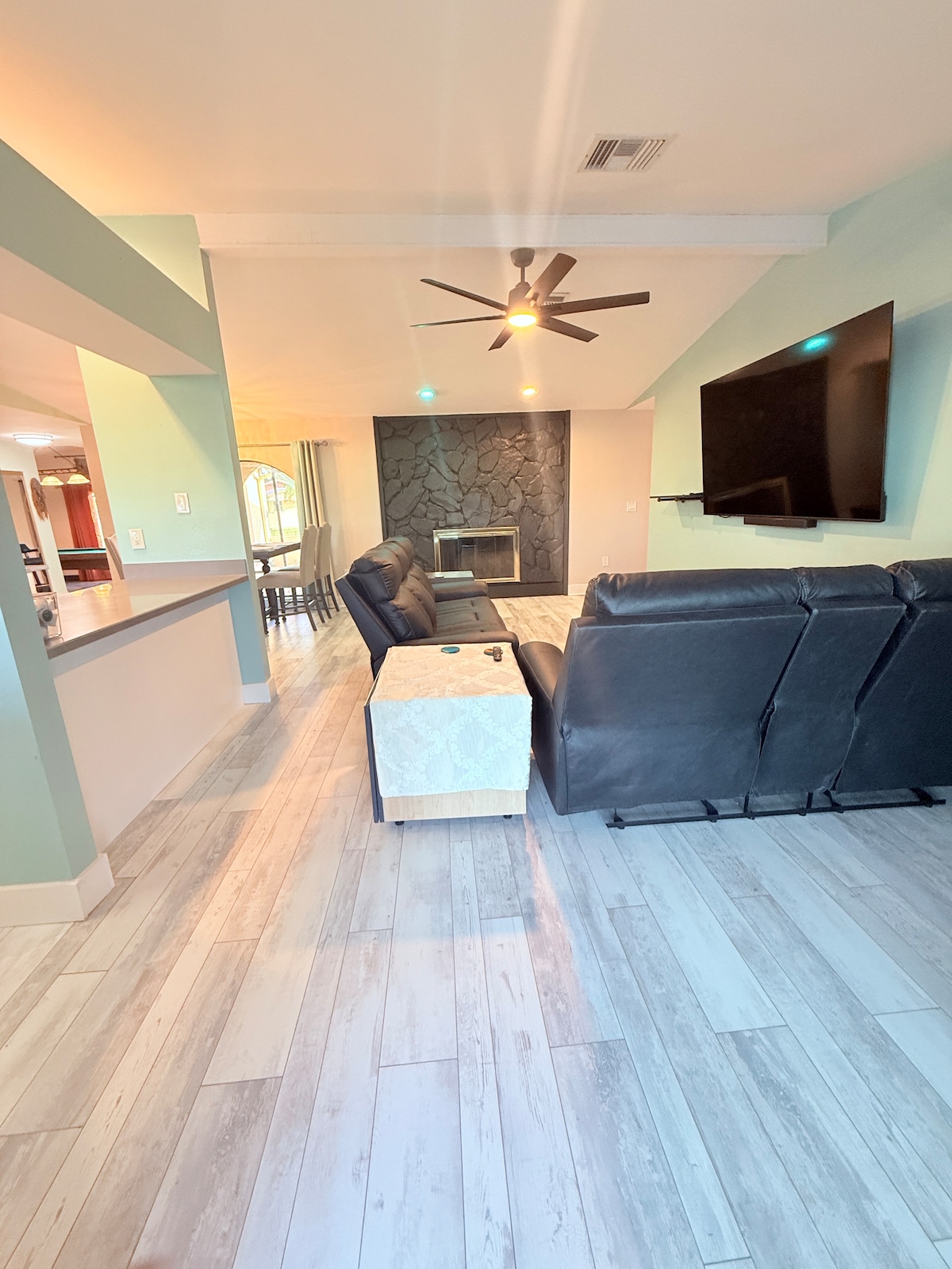 Questa esclusiva casa in stile Craftsman sulla costa di Hernando Beach offre 4 camere da letto e 2 bagni, perfetta per famiglie e gruppi. Situato alla fine di una tranquilla strada senza uscita, offre privacy, traffico minimo e un cortile completamente recintato. Goditi splendide viste sul tramonto dal cortile con oltre 60 metri di fronte al mare. Il vialetto di grandi dimensioni può ospitare più auto, barche e persino un camper, con parcheggio coperto disponibile.