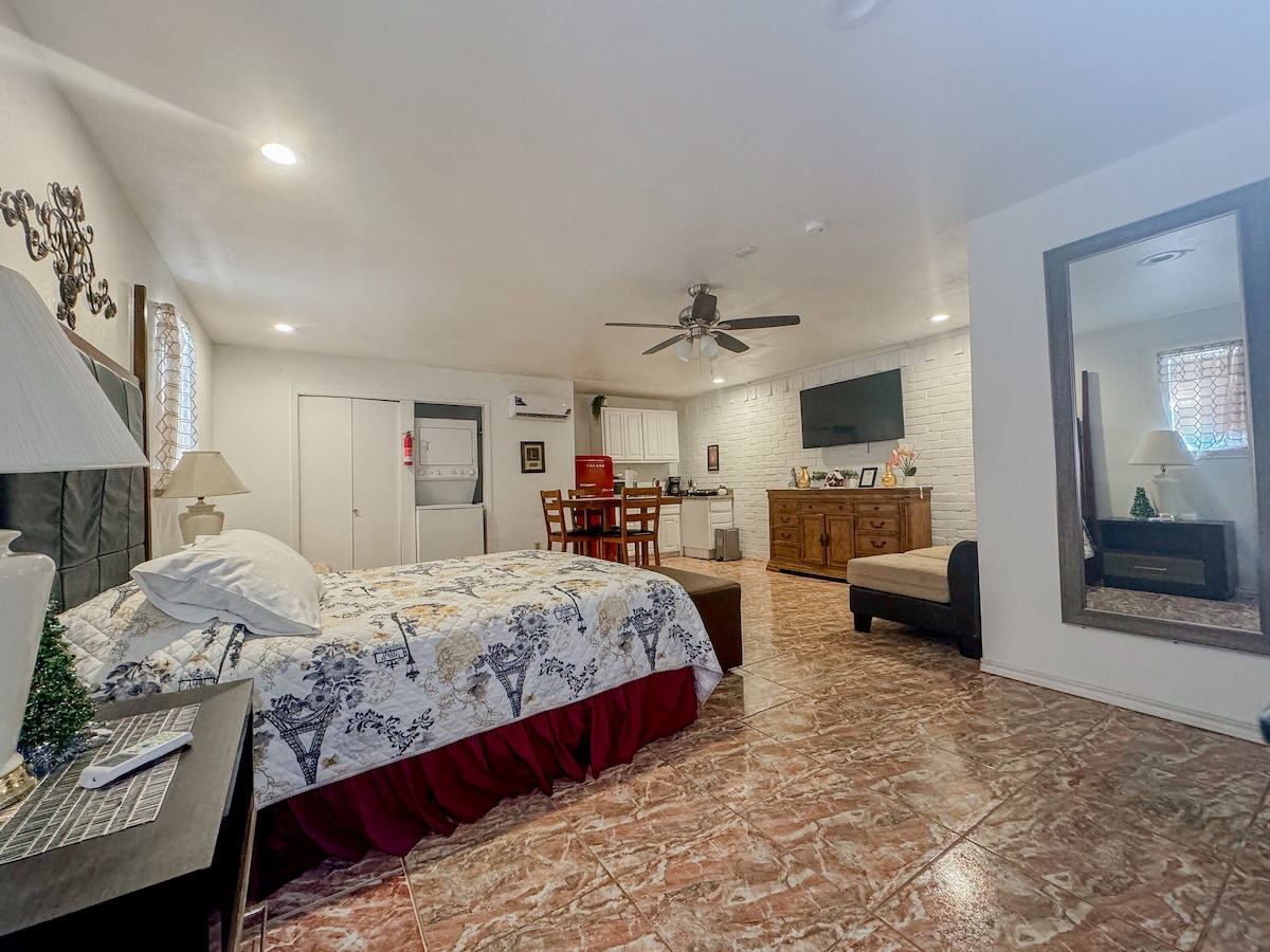 Ti diamo il benvenuto nella tua vacanza perfetta nel cuore del vivace Art District di McAllen! Questa nuovissima casita con 1 camera da letto e 1 bagno è progettata con cura per offrire comfort, comodità e stile. Ideale per chi viaggia per lavoro, per coppie o per avventurieri in solitaria, godrai di tutti i servizi di cui hai bisogno in una posizione privilegiata.