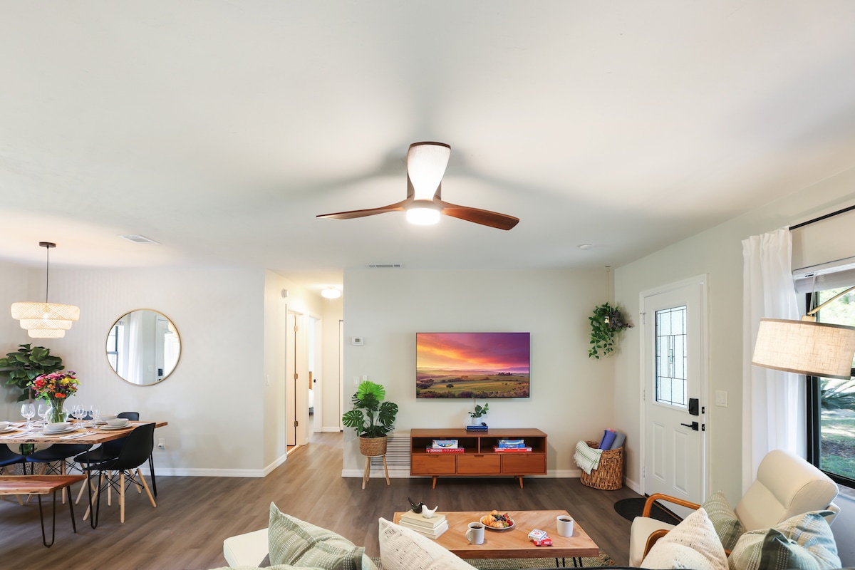 Immergiti nel divertimento in questo luminoso rifugio a tema nautico a High Springs! A soli 1,6 km dai negozi e ristoranti del centro. A pochi minuti dalle migliori sorgenti, fiumi, sentieri e immersioni di livello mondiale. Goditi camere da letto confortevoli, una TV a grande schermo, giochi, un braciere, una griglia all'aperto con area salotto e una stazione per l'attrezzatura subacquea al coperto per ricaricarti e asciugarti. Tanto spazio, fascino e avventura ti aspettano: prenota subito il tuo soggiorno! A 30 minuti da UF/Gainesville.