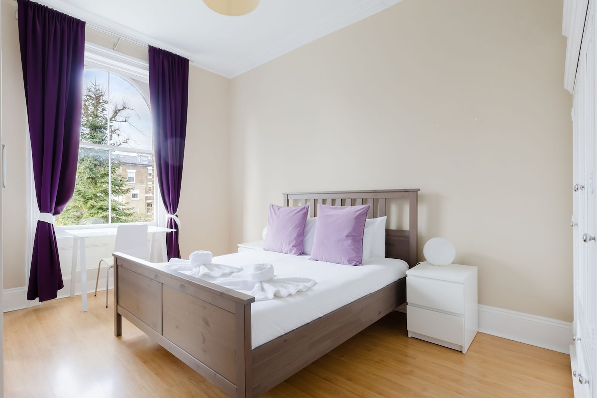Questo luminoso, spazioso e vivace appartamento con 2 camere da letto al piano terra è la casa perfetta, sia per lavoro che per piacere. A 5 minuti dalla metropolitana di Finsbury Park, a 15 minuti dal centro di Londra. L'appartamento vanta un tranquillo giardino privato, un soggiorno a pianta aperta, 2 camere da letto con letti king-size, una scrivania e una cucina completamente attrezzata. La sua posizione impareggiabile e i facili collegamenti con i mezzi di trasporto rendono tutta Londra facilmente accessibile. Nelle vicinanze ci sono anche alcuni fantastici pub e ristoranti locali.