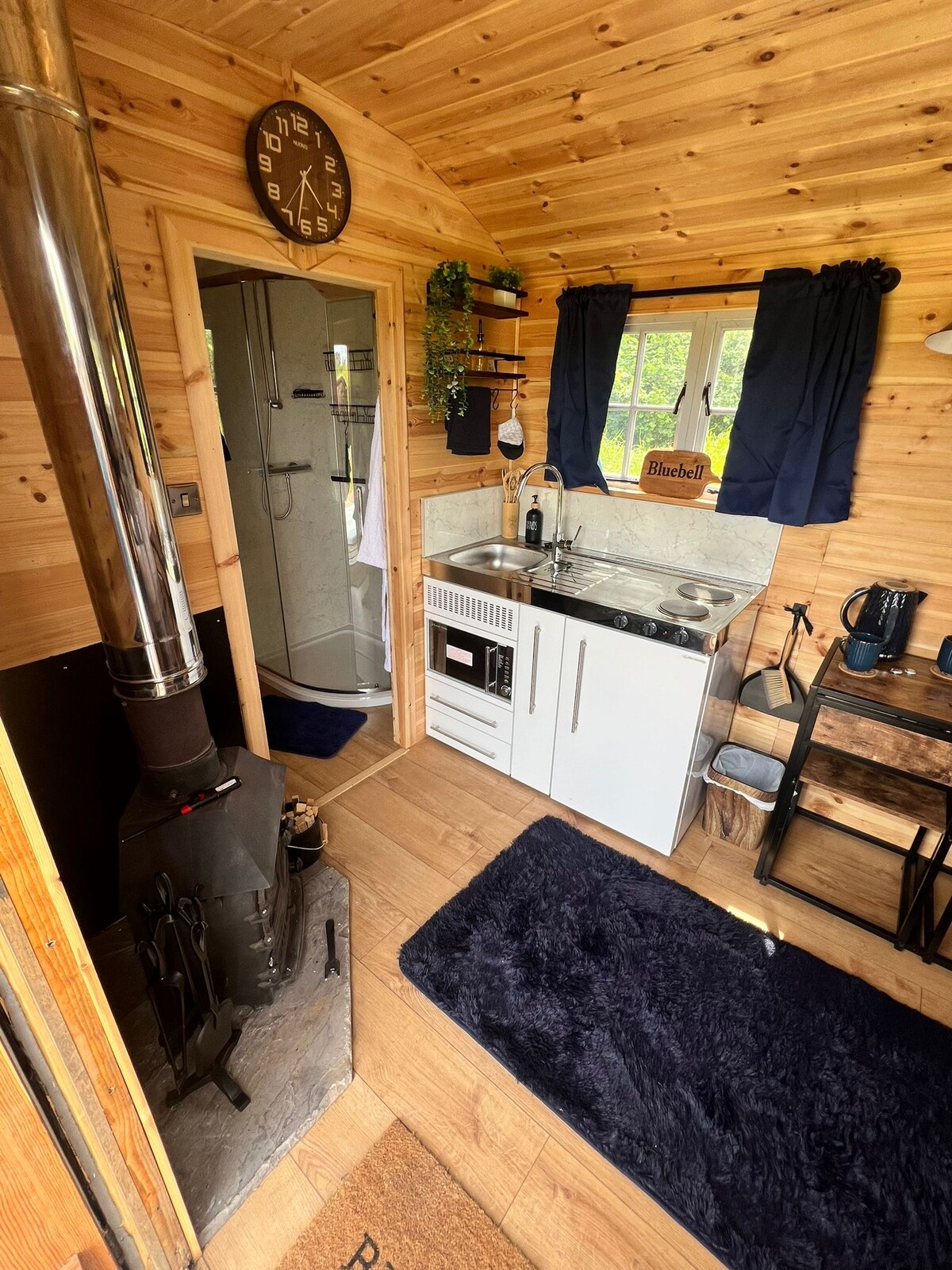 SOLO PER ADULTI. Bluebell è una vacanza idilliaca con la sua atmosfera romantica e la splendida vista sulla riserva naturale sul lago. La capanna dispone di un caldo e accogliente letto matrimoniale, ripostiglio, appendiabiti, doccia,servizi igienici,cucina con forno a microonde/piani cottura,tè e caffè,frigorifero/congelatore, fornello per tronchi, braciere (con 1 set di tronchi per entrambi) Vasca da bagno esterna e ampia zona terrazzo con vista sul lago. Blue bell ha avuto aggiornamenti invernali per proteggerti dalla pioggia e anche due nuovi lettini prendisole