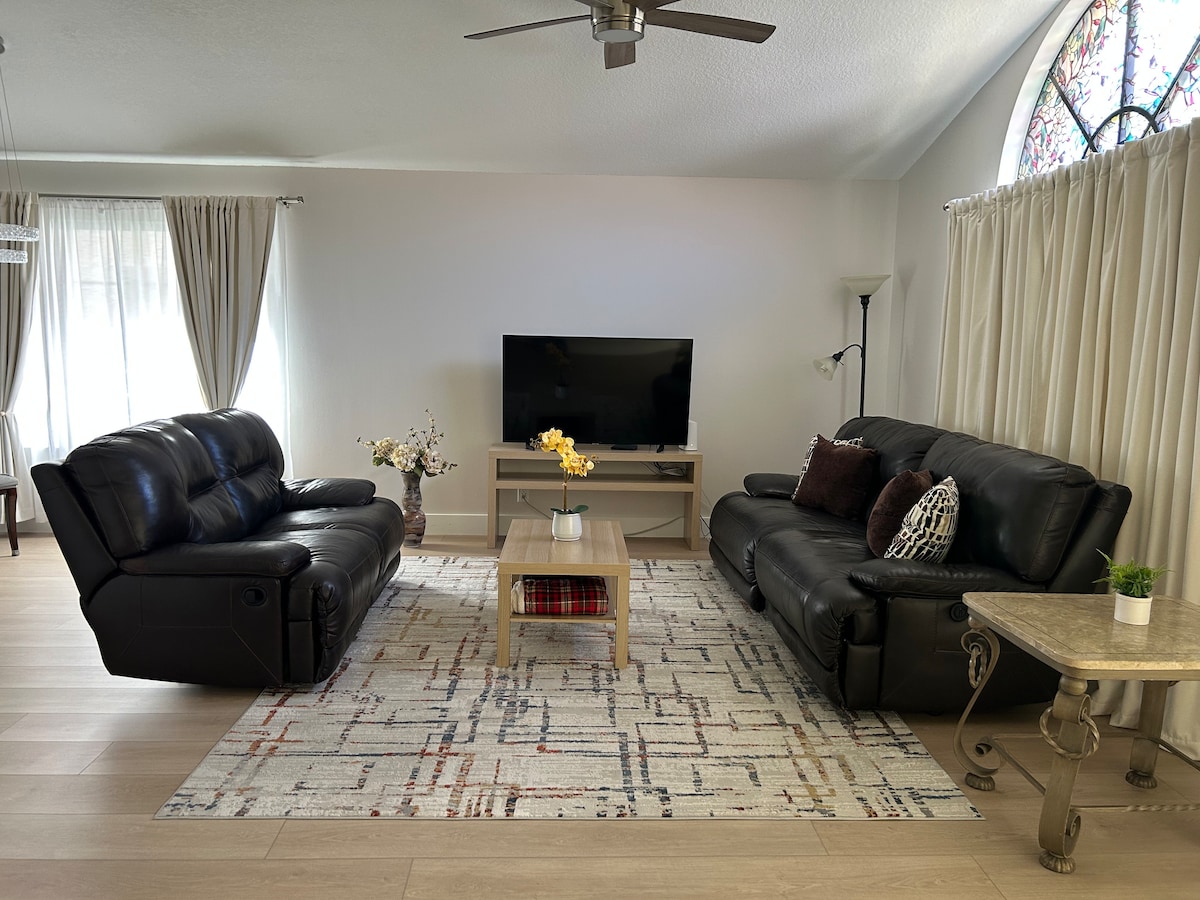 Recentemente ristrutturato! Questo appartamento ora ha un bagno, una piccola cucina e un ingresso privato. Può essere utilizzato per vacanze di lavoro o in famiglia. Si trova come estensione della casa con accesso alla casa principale. La camera dispone di tv 55”in camera da letto e tv 65” in salotto. Avrai anche accesso al resto della casa, che include tavolo da biliardo, patio con barbecue e lavanderia. Sei a 15 minuti in auto dall'oceano. Mettiamo a disposizione sedie, ombrellone e borsa frigo per la spiaggia.