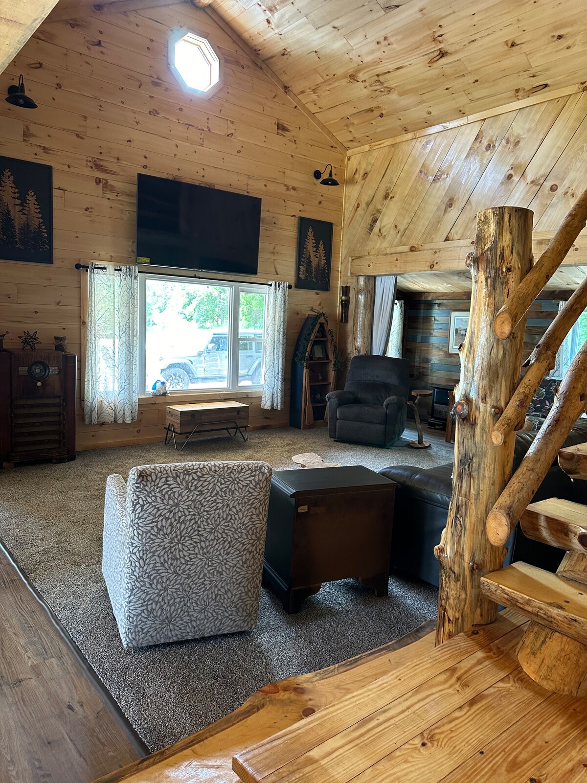 Questo piccolo e unico canin realizzato a mano è vicino a tutto, rendendo facile pianificare la tua visita. Questa è una baita rustica primitiva che porta i tuoi letti o ci sono due culle disponibili Questa baita si trova nella nostra città rustica di cowboy realizzata a mano 🐎 completa di cavalli, laghetto per la pesca o canoa, fiume da esplorare, un sacco di sentieri escursionistici e a cavallo, vicino al bagno e alla doccia all'aperto insieme alla zona cucina, ricca di fauna selvatica e natura selvaggia