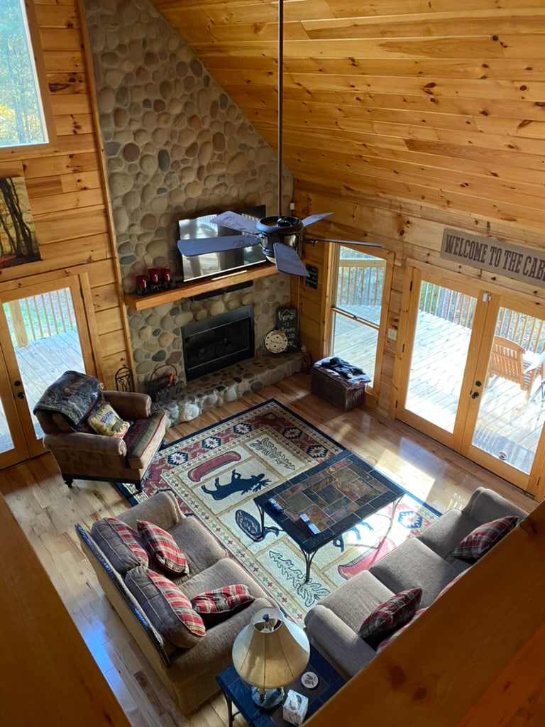 Uno dei luoghi più unici al mondo! Goditi un'esperienza con l'acqua cristallina della cava con pesci, alte scogliere rocciose, uccelli selvatici e domestici, una zattera e un pedalò. La baita è una vera casa in legno costruita per essere AMATA dagli ospiti. Rilassati sotto il portico coperto con vasca idromassaggio, sedie a dondolo e viste mozzafiato. Divertiti con la sala giochi, la TV satellitare, il WiFi e i giochi in cortile. Nel cortile sul retro sono disponibili anche un braciere e una griglia. Legna da ardere e caffè forniti. Animali domestici ammessi. Buon divertimento!