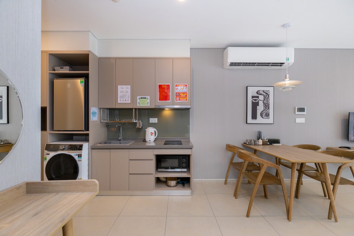 Mia Home is located on the 35th floor of The Song Building- 1 floor to the rooftop pool. The apartment is designed in vintage, romantic and cozy style, best suitable for couples or group of friends who love romantic vibe but still want some modern convenience. Free amenities you can enjoy during your stay: - Infinity Rooftop Pool (Close on Monday) - Sauna & Gym - Water park- children pool (Close on Thursday) - 5 minutes to the beach and 5 minutes to the nearest super market