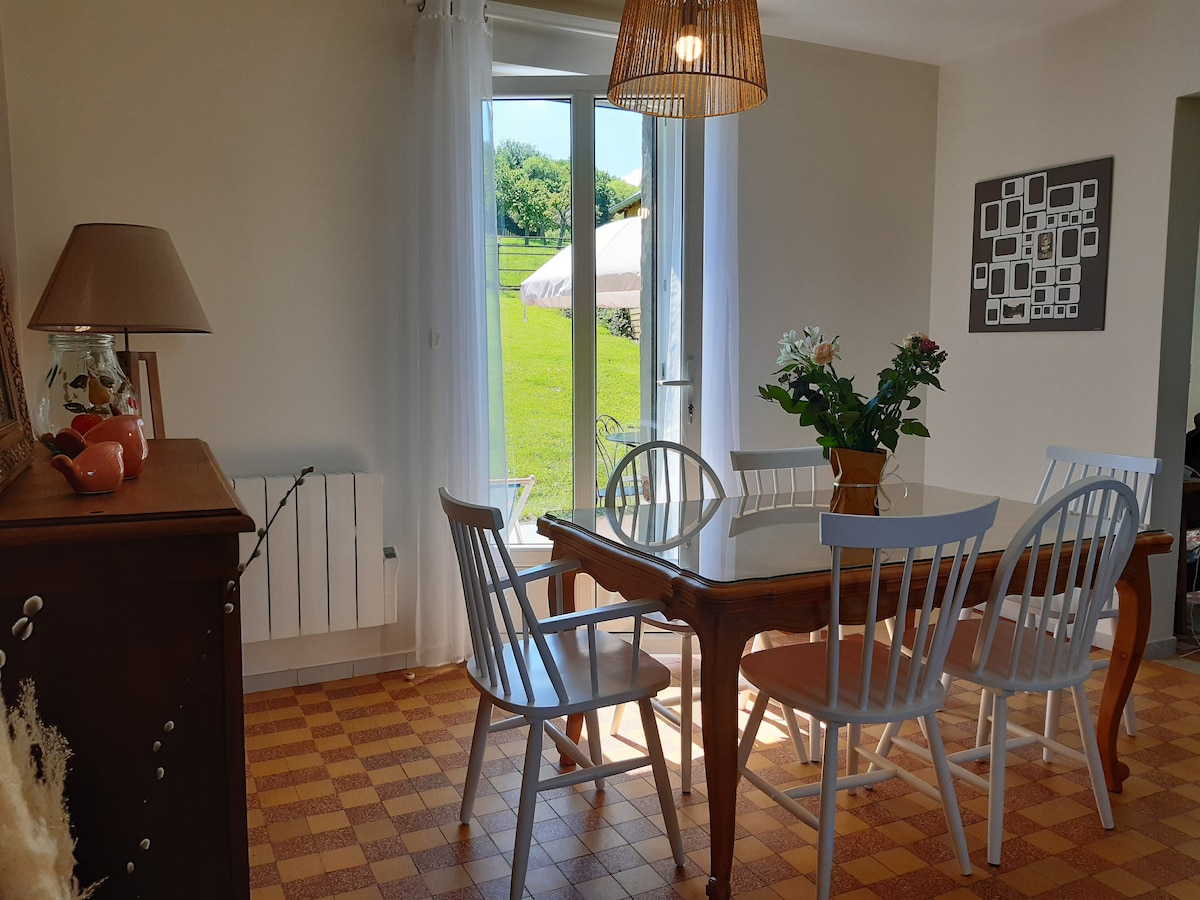 Un lieu CALME au milieu d'un jardin arboré dans un CADRE NATUREL. Ce chalet isolé vous servira de nid douillet avec sa chambre mansardée à l'étage accessible par une échelle. Sans oublié la cuisine tout équipé, la salle d'eau et le salon aménagé d'un espace repas et d'un canapé-lit. Vous pourrez profiter de la terrasse, du jardin et de son coin cocooning selon la saison en tout intimité. Des équipements extérieurs sont disponibles pour le bonheur des plus jeunes. AU PLAISIR DE VOUS ACCUEILLIR!