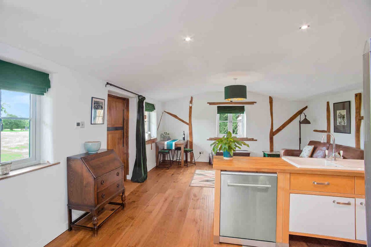 Una splendida residenza in stile boutique, recentemente convertita e ristrutturata completamente con un arredamento elegante, che crea una meravigliosa atmosfera accogliente in un ambiente rurale, ideale per una coppia o una persona singola. L'alloggio è annesso alla casa principale, ma ha un proprio ingresso sul davanti. Con una camera da letto con letto matrimoniale grande, una zona pranzo con una comoda poltrona, un bagno con doccia e una cucina moderna, l'appartamento si affaccia sul giardino della casa principale e su alberi secolari, ed è accessibile tramite doppie porte.