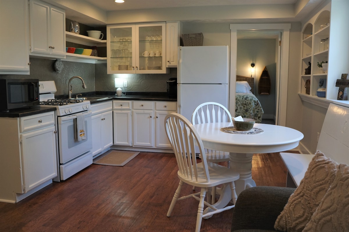 Solo al piano inferiore con un angolo cottura dotato di stoviglie e molti elettrodomestici da cucina. Il piano inferiore privato comprende 2 camere da letto, 3 letti queen size, 1 letto singolo, bagno privato completo, soggiorno, ingresso privato, Wi-Fi, griglia, frigo/congelatore, macchina del caffè, forno a microonde, tostapane, macchina per panini, forno per arrosti, piastra e altro ancora. Situato nella zona dell'Holland, a 20 minuti da Grand Rapids, Grand Haven, Saugatuck e dal lago Michigan. L'uso della vasca idromassaggio è molto probabile ma non garantito. Chiedi se è importante per il tuo soggiorno.