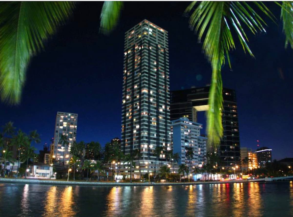Accogliente monolocale a Waikiki con letto king-size e vista sul canale