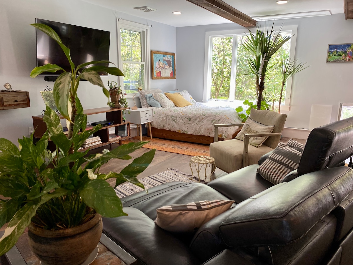 Questo soleggiato monolocale, annesso a una casa di famiglia ma con il proprio spazio privato, tra cui un ingresso indipendente, un posto auto dedicato, un piccolo patio e un'area prato con posti a sedere, si trova nel cuore pedonale di Wakefield, vicino all'URI, alle spiagge, a Newport e alla pista ciclabile. Letto matrimoniale; divano letto matrimoniale; più adatto a 2 adulti (il divano letto è più adatto ai bambini). Frigorifero, microonde, caffè, griglia (senza forno). Adatto alle allergie: prodotti per il bucato Free & Clear; no animali domestici. Self check-in. Sconto automatico per soggiorni più lunghi.