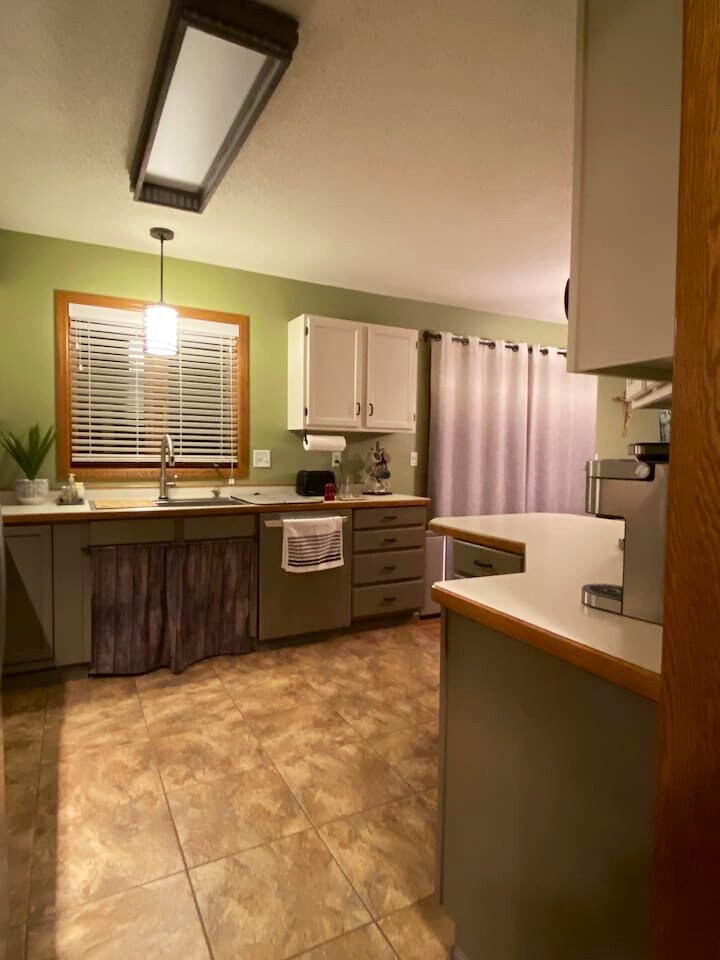 Ti diamo il benvenuto nella tua casa lontano da casa! Questo spazioso rambler con 4 camere da letto e 3 bagni unisce stile e comfort con soffitti a volta. Splendida cucina con piani di lavoro in quarzo. La suite principale offre un letto king-size con cabina armadio: benvenuta comodità! Al piano di sotto, rilassati in un enorme soggiorno perfetto per serate di cinema, divertimento e giochi. Due accoglienti camere da letto ti aspettano con una cabina armadio di grandi dimensioni. Esci in un'oasi recintata, completa di terrazza, patio e caminetto. L'area è pronta per il divertimento.