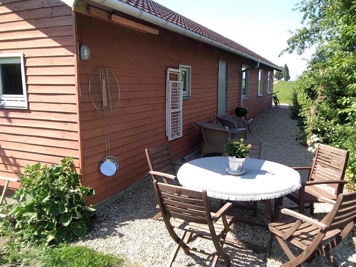 Alloggio di circa 22 m2 con soppalco, bagno privato con doccia, cucina privata con frigorifero e piano cottura a induzione. La dependance è posizionata ad angolo rispetto al posto auto coperto/ripostiglio e si trova nel giardino. Ci sono 4 posti letto, due sul soppalco e due sul divano letto. Piumoni/cuscini/biancheria da letto/asciugamani/strofinacci sono a disposizione. È possibile prendere in prestito la lavatrice/asciugatrice, così come la serra è a disposizione, ma insieme alla coppia ospitante. L'alloggio si trova a circa 2 km dal fiordo e dalla foresta e a 8 km da Juelsminde.