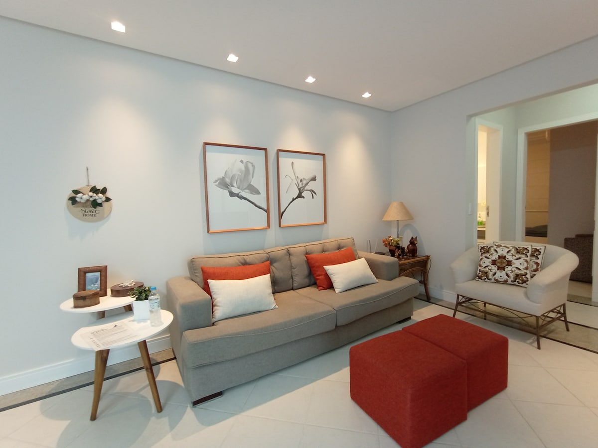 Appartamento nel centro di Balneário Camboriú a 50 metri dal mare. Internet veloce, wi-fi, tv via cavo, letto matrimoniale Queen, aria condizionata in tutte le camere. Garage privato. Nel cuore della città!! Situato in Praça Higino Pio, accanto al centro commerciale Atlântico, bar, ristoranti e l'intero centro commerciale di Av. Brasile. Parco Beto Carreiro / Outlet Premium / Fashion outlet a 30 minuti di auto.