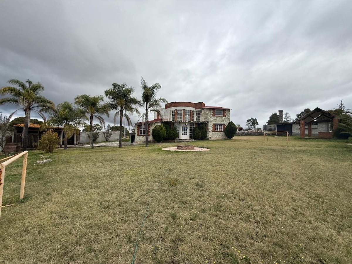 Splendido chalet rustico, con ottima posizione, ad 1 km dal centro di Huasca, a mezzo km dal Centro Ecoturistico Bosque San Miguel e dalla Hacienda de San Miguel, centralissima, tutto pavimentato , ottimo per passare del tempo con la famiglia e davvero sentire come ci si sente in uno chalet di famiglia in un luogo molto tranquillo e a contatto con la natura,grande trama con giardino tutto bardeado
