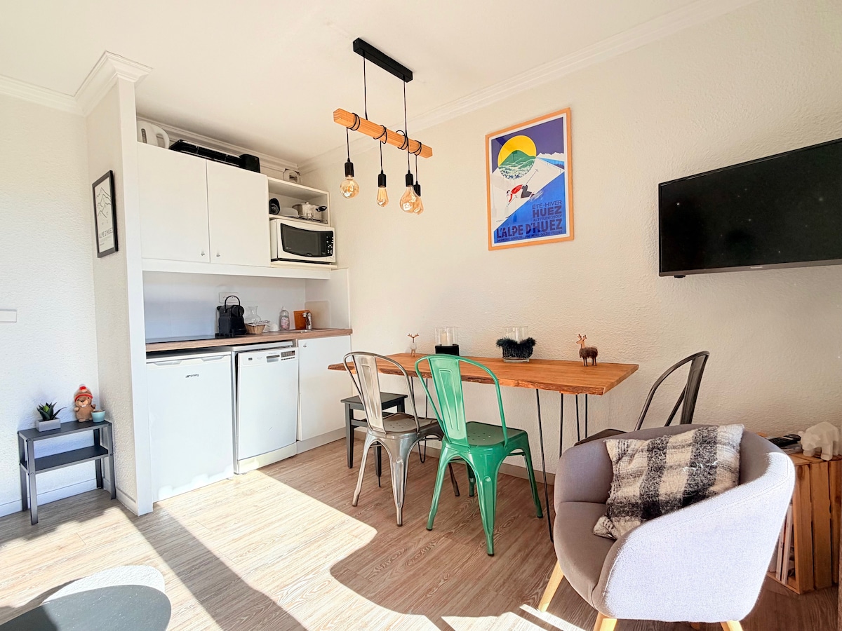 -Appartement T2+coin montagne, 48 m2, terrasse, au 2ème étage. - LIMITÉ À 4 ADULTES AU MAXIMUM. - Alpe d Huez, quartier Cognet. -Piscine, sauna, hammam (ouverts jusqu’à mi avril puis de juillet à août), garage, local skis et vélos. -Coin montagne isolé par porte, avec 2 lits superposés 90x190 -wc séparé. -Salle d'eau avec douche italienne, vasque, sèche serviettes, sèche cheveux. -Grande chambre avec placards. Lit 160x200 -Canapé lit grand confort de 140x200 dans le salon. -Cuisine équipée.