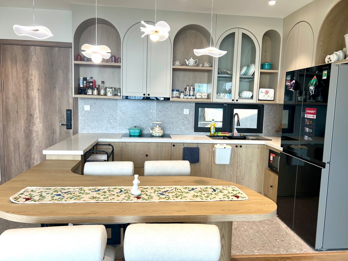 Benvenuti a Solya Home: letto matrimoniale grande con balcone, vista sulle ville nella foresta di Sol, la più grande area urbana ecologica verde del Vietnam. - Piscina 4 stagioni, Palestra, sauna al 3° piano con prezzi preferenziali. Area giochi, ball house e lettura al 2° piano per bambini. - Percorso a piedi lungo il fiume, vista sulla villa dell'isola, 4 parchi verdi. - Check-in automatico. Wifi gratuito. Allestimento pieno di utensili, utensili da cucina, TV... Ti diamo il benvenuto e augura a te e alla tua famiglia, amici, una vacanza indimenticabile con Solya Home.
