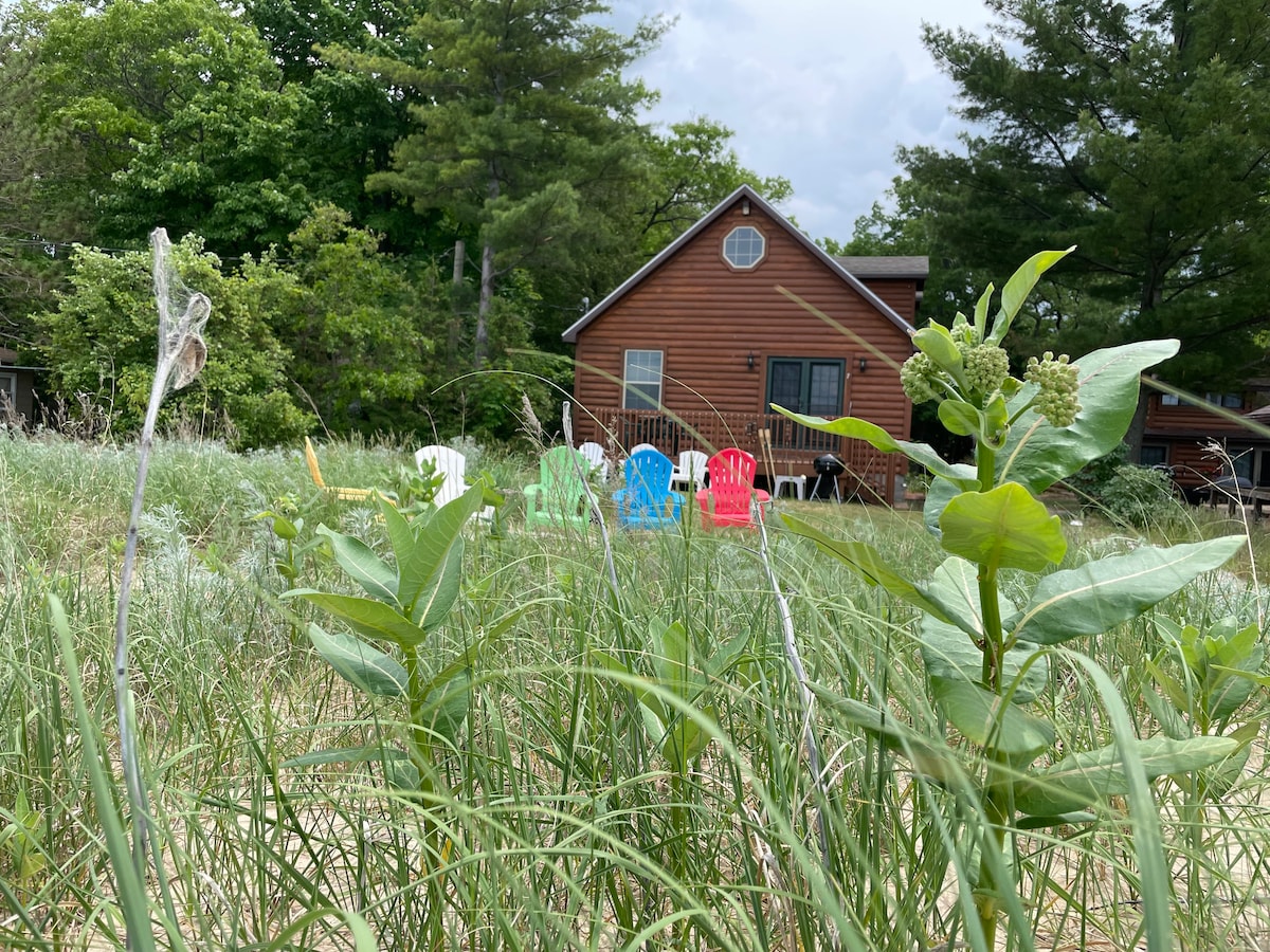 Questo chalet duplex in pino nodoso si trova sopra una spiaggia di sabbia del bellissimo lago Huron. Con un focolare, un giardino di farfalle e tanta sabbia, questo incantevole chalet è il luogo perfetto per una grande vacanza in famiglia o un viaggio di gruppo in spiaggia. Può essere una tranquilla fuga romantica per lunghe passeggiate sulla spiaggia o un'emozionante festa in famiglia con hot dog arrostiti sul fuoco e marshmallow bruciacchiati.